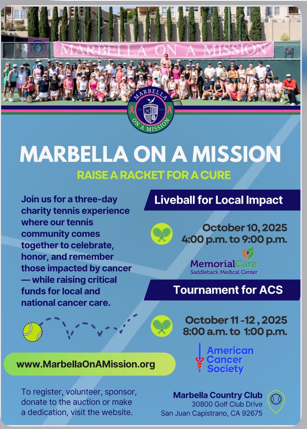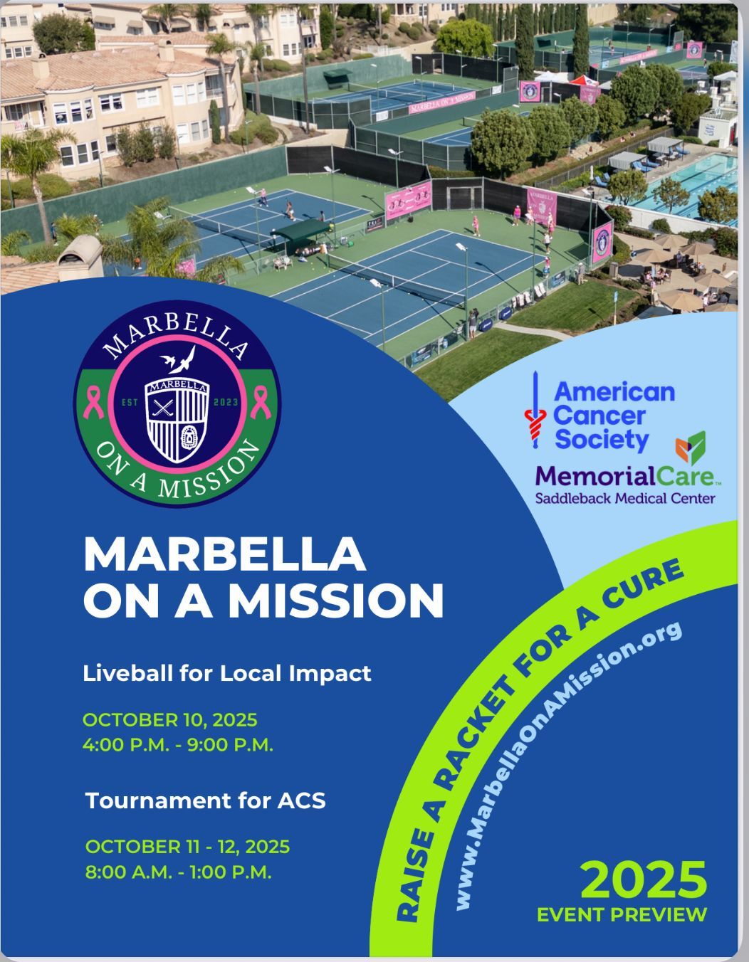 T3 Tennis is proud to participate in Marbella on a Mission, a three-day charity tennis event uniting the community to celebrate, honor, and remember those impacted by cancer, while raising vital funds for local and national cancer care.